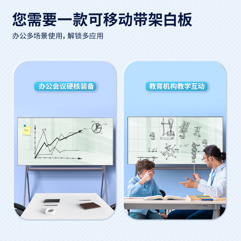 商品名称:得力50072芭蕾支架磁性玻璃白板1800*900mm(灰色)(块)